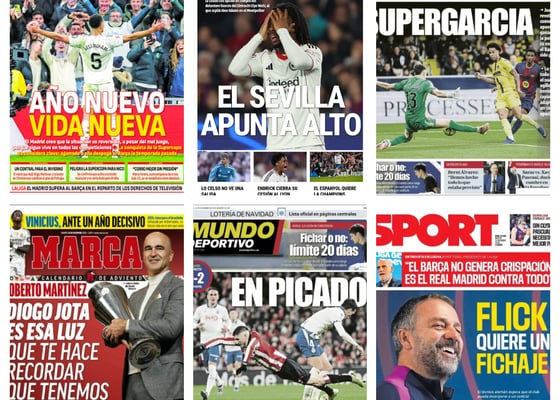PortadasEl Sevilla apunta alto en el mercado de fichajes, el Real Madrid espera cambiar el rumbo en 2026, Joan García salva al Barcelona... Así vienen las portadas del 23 de diciembre